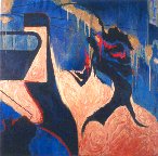 From time to time I am compelled to work in a purely abstract or "non-objective" mode. Stylistically there is a difference, but I see no dichotomy in figurative and abstract modes of working. Each have there own schools of allegiance, for certain, but I view any approach to art as a tool---a means to an end. And the same qualities of a good abstract painting will be present in a representational piece; the same aesthetic criteria apply. In fact, the difference between abstraction and representation is really one of degree. Consider that even a photograph is an abstraction (that is, an extraction of the essence) since the composition of the image is one extracted from an infinite choice of subjects and viewpoints. Conversely a completely non-objective piece could be looked upon as an image of painted shapes---it is what it is with no illusions presented. Though non-objective in their form these works relate to the human condition. The visual tension produced through the tangential shapes, intersecting lines, and juxtaposed color serves as a metaphor for the tension of thinking and living in this world. Layering is important in these paintings in that the resulting surface richness adds visual interest and also reinforces the concept of the complexity and multiplicity of life. The themes I pursue will likely intersect with those of my figurative work, but the elements of the paintings themselves are given a freer reign. I use this approach often to begin a work without any particular end in mind. Guided by intuition and vague feelings about how certain shapes may speak, how certain lines might evoke tensions and emotions, I continue in a tentative manner allowing each brush stroke to inform the next. Working in this manner allows me to express and experiment with a wide range of approaches to subject matter, themes, and content. |