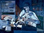 This environment can be a physical space, as in an artist's studio, or a mental space, such as a frame of mind dedicated to thought experiments or poetry. This space can be thought of, or delimited, in many ways. In a given painting, for example, the artist's temenos is the blank canvas---a pristine, white surface upon which to play out ideas in form and content. In this series I have interpreted the theme in a variety of ways through diverse subject matter. The subjects include musicians, poets, painters, sculptors, weavers, even the philosopher in his/her world of thought. I have not included the images of the paintings that ultimately did not succeed; indeed, some of the canvases are no longer extant, having been painted over or cut up for collages. This is a series which I plan to return to every so often. For me the studio is indeed a magical place, a haven from the world, a place to retreat to create art and ponder life's mysteries. As I look around my studio many ideas occur to me. Many interesting "found" still life subjects await. References I have used for this series include: