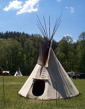 poles to control the smoke flaps. 18' tipi is pitched on a 15 pole
