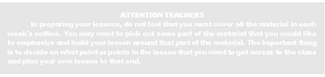 To assist you in relating the verses to the coming Sunday's class, these lesson outlines are provided to you in advance for the entire 13 weeks.