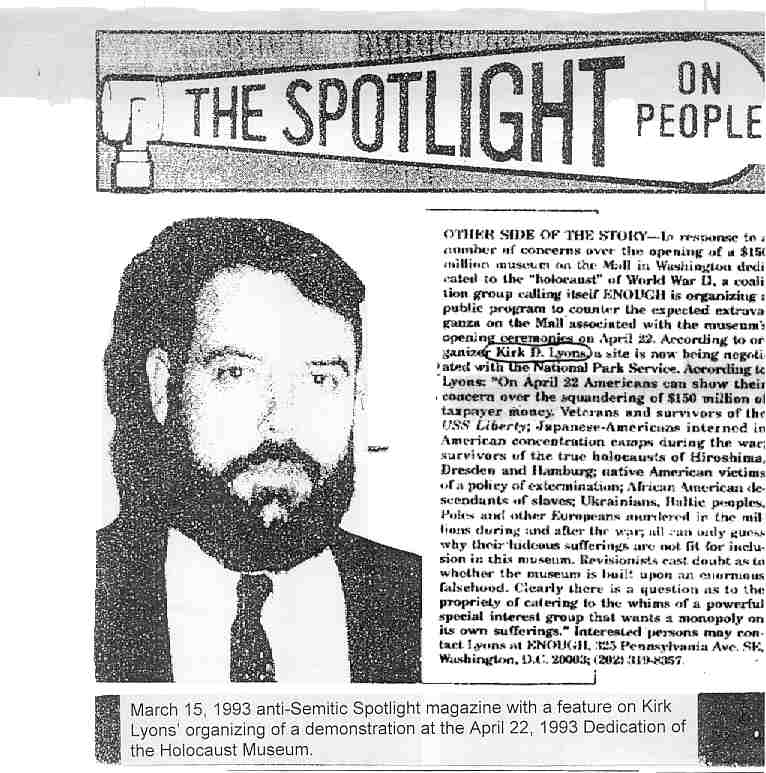 As reported March 15, 1993 in The Spotlight, an anti-Semitic publication
